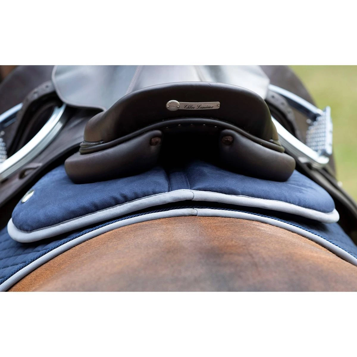 The carbon mesh spine insert ensures optimum wither relief and air flow as the pad’s high wither shape reduces pressure. Contrasting binding, metal motif and PU leather detail make this a very stylish half pad. Suitable for use with a variety of saddle models.