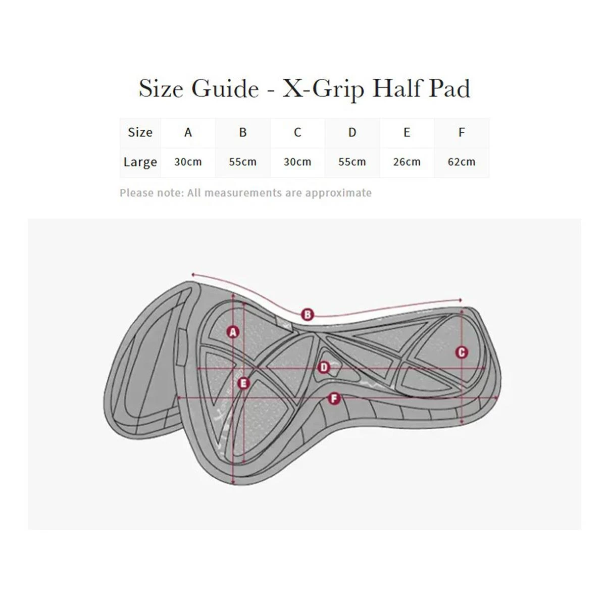 The X-Grip Half Pad combines the stylish, iconic LeMieux cut with the new X-Grip silicone design to ensure saddle stability and grip. The Unique blast foam core has been through a process where hot air is forced through the memory foam under pressure to create the extremely breathable yet supportive and light half pad.