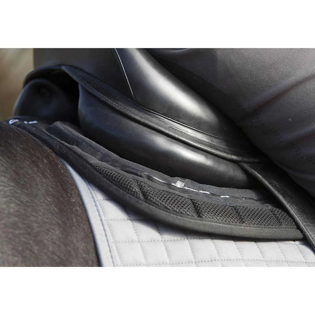 A lower density memory foam under the X-Grip silicone aids saddles to bed down creating the ultimate low profile, maximum support half pad. Combine this with any LeMieux saddle pad to complete the look.