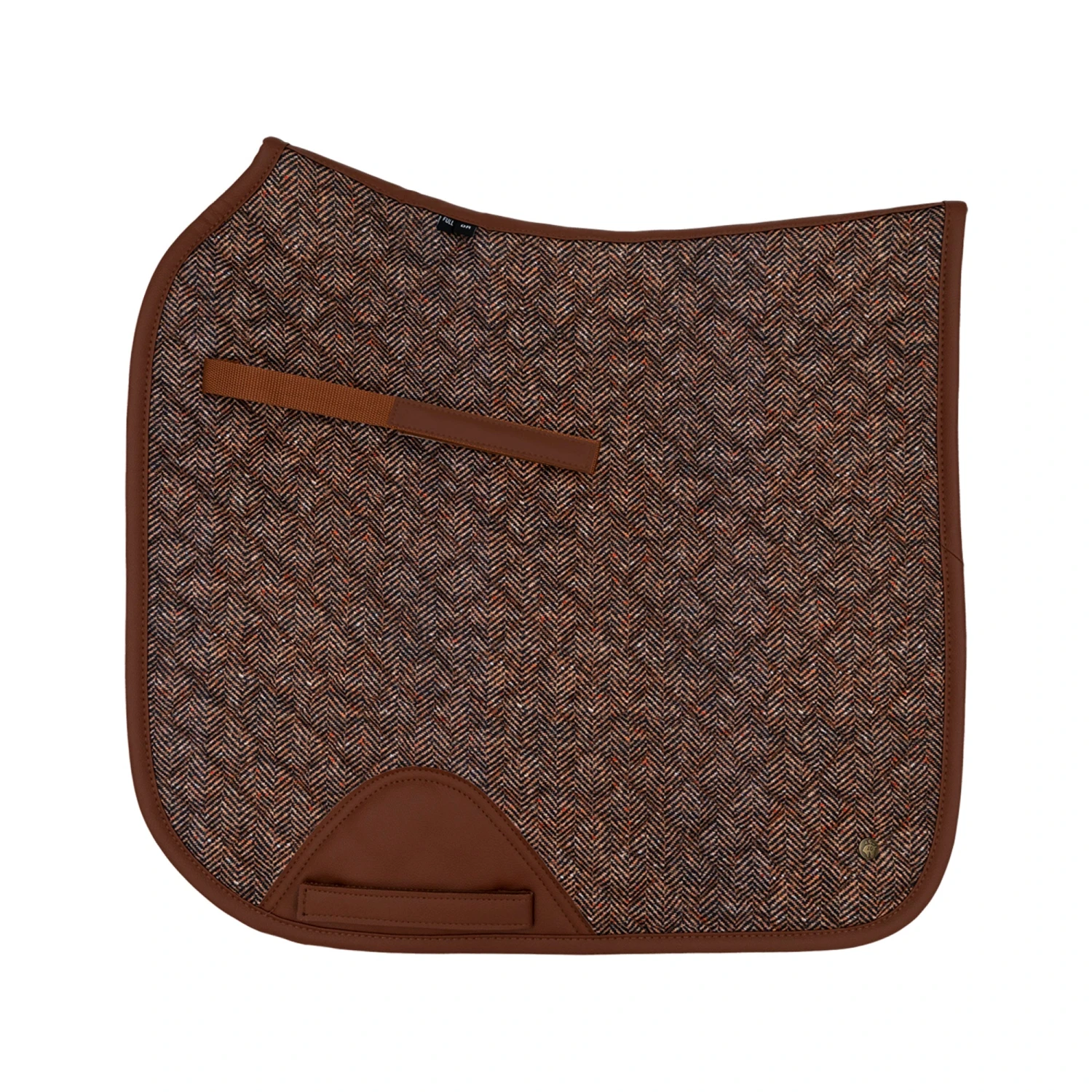 16C Dressage pad in our signature herringbone tweed, finished in cognac leatherette trim.