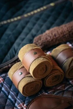 Sixteen Cypress Wool fleece half pad in a navy quilted cotton base, ivory wool fleece & cognac leatherette finish. Designed with wither relief and to support our range of 16C saddle pads. Non-slip, shock absorbent, breathable support.