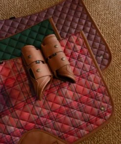 Sixteen Cypress Wool fleece half pad in printed herringbone, quilted cotton base, hickory brown wool fleece & matching leatherette finish. Designed with wither relief and to support our range of Sixteen Cypress saddle pads. Non-slip, shock absorbent, breathable support.